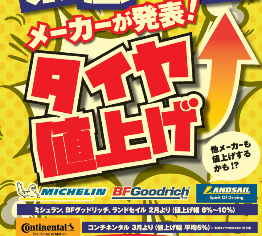 いくつかのメーカーでタイヤの値上げをこの2月3月に予定されております。