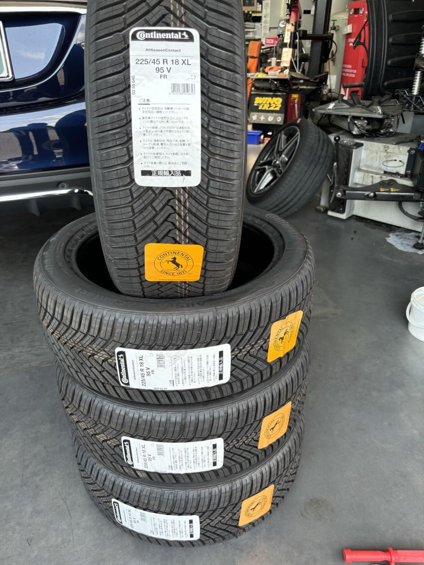 今回はCクラスのタイヤ交換をご依頼いただきました!装着タイヤは当店で大人気のContinental All Season Contact2です。