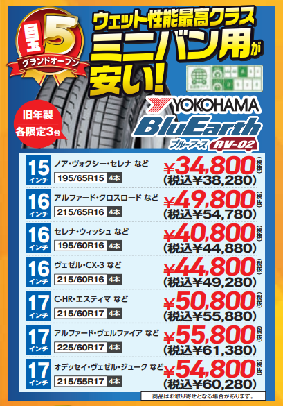 千葉ニュータウン店 ヨコハマのミニバン専用タイヤが安い‼
