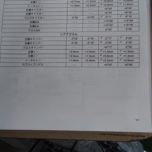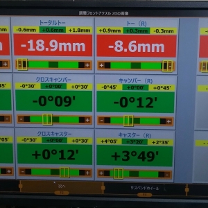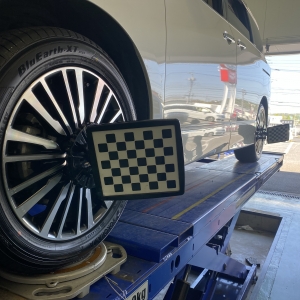 エルグランドE52のアライメント調整が入庫しました。タイヤが内減り・外べり場所...