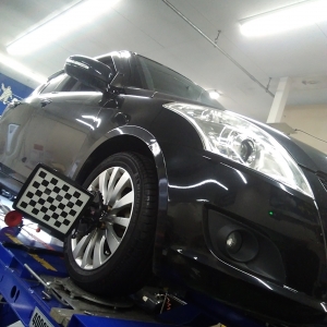 スイフトのアライメント調整が入庫しました!タイヤの特に右前のタイヤの内側が減っ...