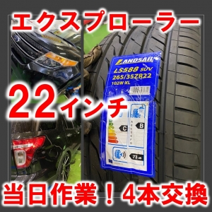 フォード エクスプローラーのタイヤ4本交換!22インチも当日作業可能!在庫有り