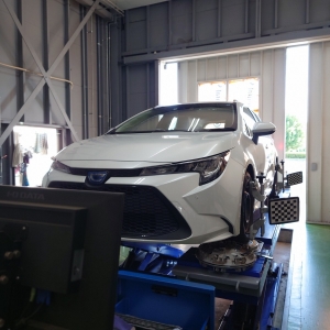こんにちは!本日は中々の暑い日です。今日のアライメント調整は...トヨタのカ...