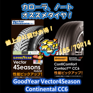 カローラやノートにオススメタイヤ!185/70R14サイズ2選!