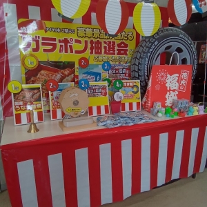 只今、タイヤ市場でガラポン抽選会開催中です!今日は朝から2等も出ました!...