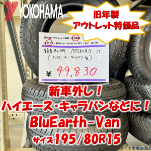 ハイエースやキャラバンなど!新車はずしのタイヤが超特価!ヨコハマ BluEarth-Van≪195/80R15≫タイヤ市場加須店