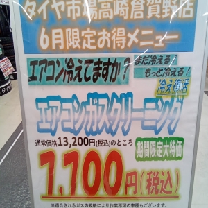 エアコンガスのクリーニングがお得に作業できるのは今月まで!ガスの補充・不純物の除去までおまかせ!タイヤ市場加須店