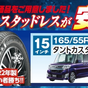 旧年特価品のスタッドレスタイヤのご案内です。軽自動車サイズ165/55R15の...