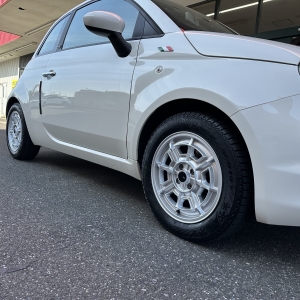 こんにちは!先日フィアット500Cでご来店のお客様のお車にスタッドレスタイヤと...