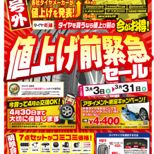 只今、タイヤ市場高崎倉賀野店では在庫一掃セール開催中です!しかも、スタッ...