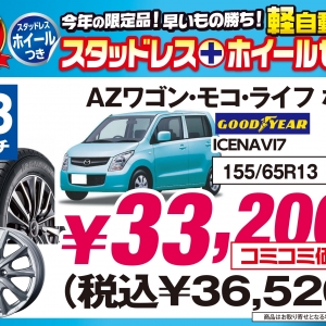 まずは、軽自動車用スタッドレスタイヤの特価品です!在庫限り、数量限定品になりま...