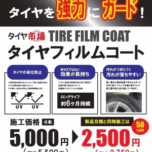 タイヤを紫外線から守ります!【タイヤフィルムコート】高崎周辺でタイヤ交換をするならタイヤ市場高崎緑町店へ!