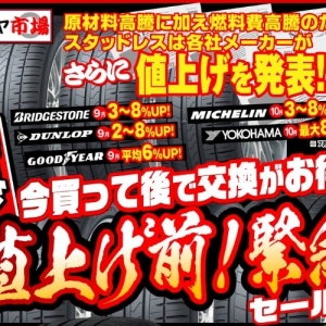 WEBチラシ情報!春先取り!有名ブランドタイヤビックセール開催!!!お得な情報もあるかも!!!足利・太田・邑楽・大泉・新田・桐生・熊谷・羽生近郊の方ごらんください!!!