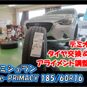 デミオに高性能低燃費タイヤミシュラン e-PRIMACY 185/60R16 装着しました!