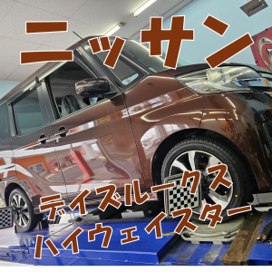 ニッサン✖デイズルークスハイウェイスターでアライメント調整 タイヤ市場駒形店!!ディーラーの半額以下で!! 群馬県内外・前橋・桐生・高崎・藤岡・伊勢崎・太田・利根・沼田・吾妻.エリアにお住いの方、その他の地域にお住いの方も是非!