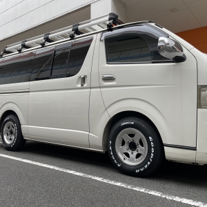 みなさんこんにちは!今回はハイエースにホワイトレタータイヤを装着させて頂きまし...