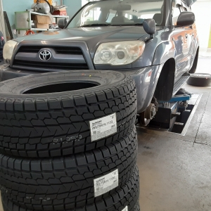 こんにちは!本日ハイラックスサーフでご来店頂きましたお客様のお車のタイヤ交換を...