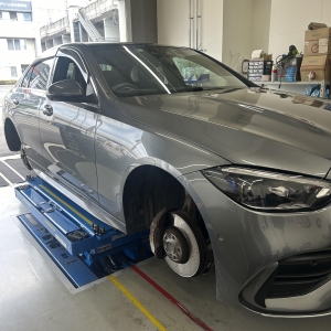 ベンツGLA タイヤ交換&アライメント調整 輸入車のタイヤ交換、メンテナンスもお任せください!承認タイヤ、ランフラットタイヤもご用意可能(^▽^)/