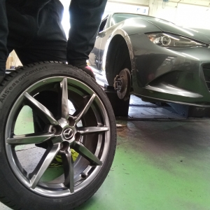 マツダロードスターで4本交換とアライメント調整が入庫です!前後共、ズレてま...