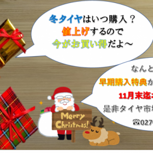 タイヤ市場伊勢崎宮子店です今年もスタッドレスタイヤの値上げをメーカー予定して...