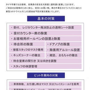 こんにちは!タイヤ市場水戸笠原店ではコロナ感染予防の為に①マスクの着用②手...