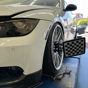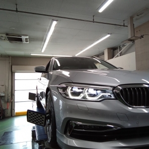 こんにちは!本日ご予約を頂いていましたお客様のBMW5シリーズのアライメント調...