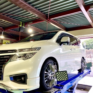 ローダウンをしてからハンドルがズレてしまったとのことでアライメント調整を...