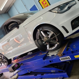ローダウンをしてからハンドルがズレてしまったとのことでアライメント調整を...