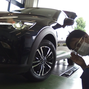 大人気CXシリーズタイヤ交換(CX-3・ダンロップ・ルマンⅤ・215/50R18・ハブ防錆・アライメント調整)