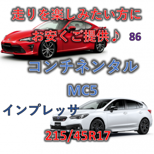 215/45R17おすすめタイヤ!コンチネンタルMC5!86やインプレッサ、アイシスなどに!