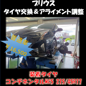 プリウスのタイヤ交換+アライメント調整させて頂きました♪