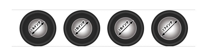 タイヤの外径をそのままにホイールの径を大きくすることです。一般的にインチアップをするとタイヤ幅は広くなり(偏平率が下がり)、空気圧の設定は高くなります。