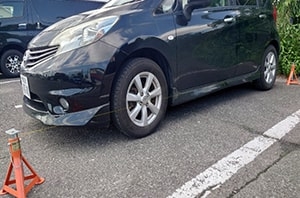 ジャッキアップした車は想像以上に不安定です。車の下に入る場合には、必ずリジットラックを使用し、万一に備えて一人での作業は行わないでください。