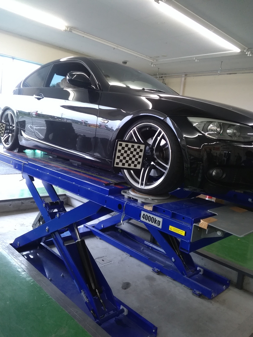 本日はBMWクーペの組み換え作業とアライメント調整をさせて頂きました。