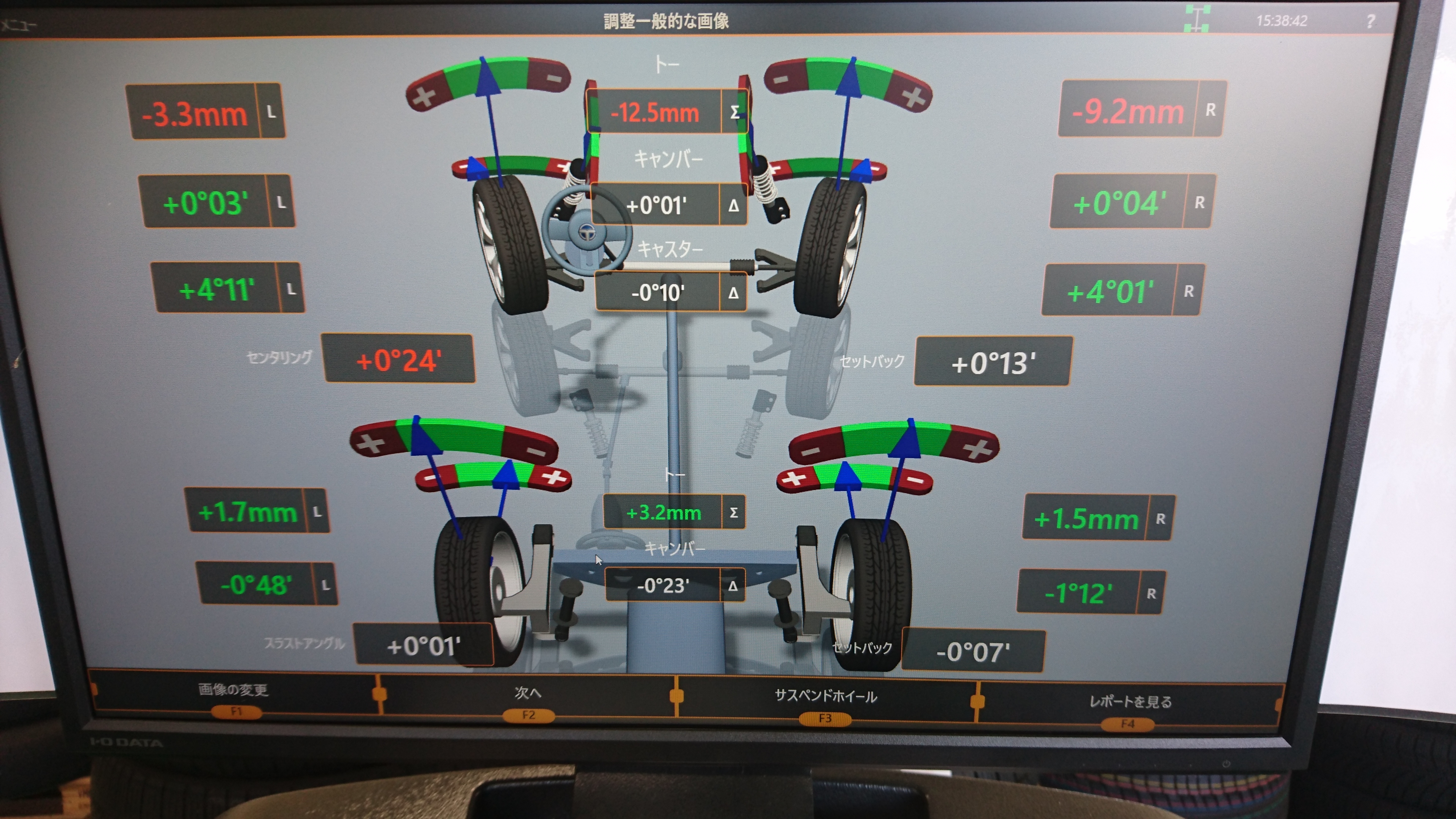 17インチ化&車高調でローダウンされたNワゴンのアライメント調整をさせて頂きました!タイヤの編摩耗が激しいという事で測定させて頂いたところかなりのトーアウト状態!トーゼロ付近に調整させて頂きました(^_^.)快適なハンドリングになると良いですね!オーナー様有難う御座いました!DSC_1576.JPG