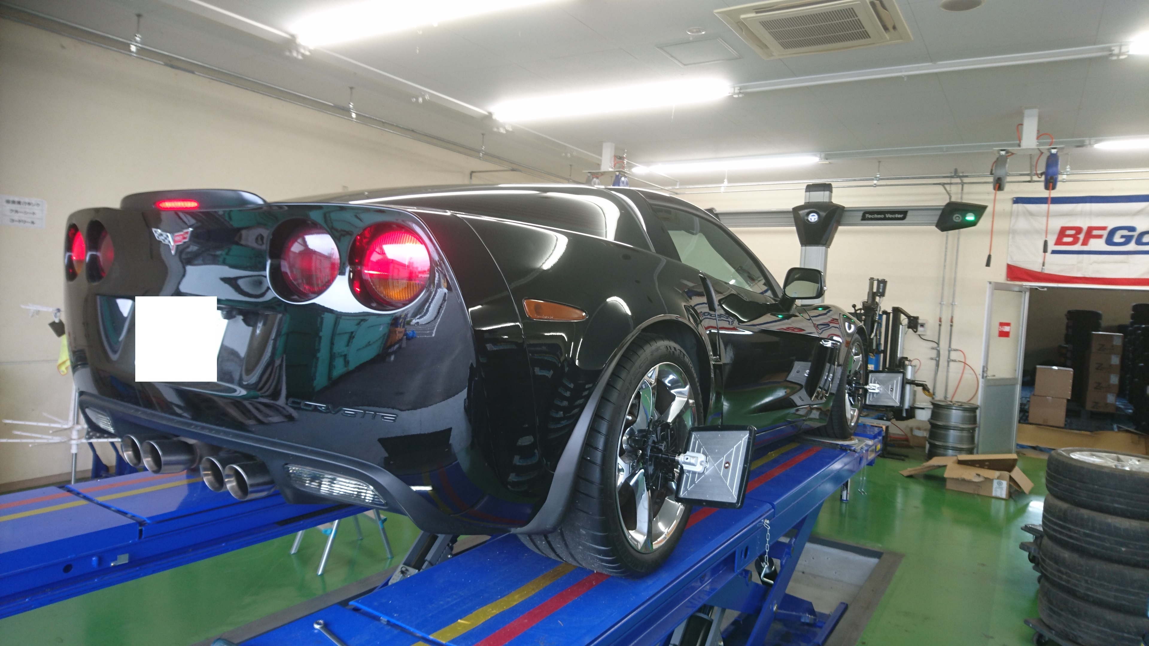 シボレーコルベットでアライメント調整をさせて頂きました!!アメ車のスポーツカーは最近少なくなってきてしまっていますが、当店は大歓迎です!最近はWEBを見て来店される方も多くなって来ました!