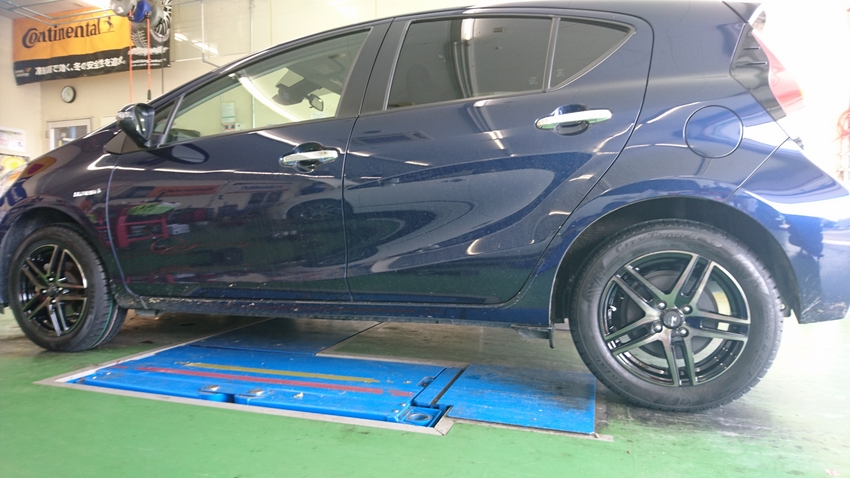 アクアに15インチホイールセット装着です!ホイールは当社自慢のオリジナルホイールジーマイスト!!ツイン5本スポークでブラッククリアカラー!このデザインは鉄板です!ボディ色ともマッチングOKです!(^^)!