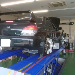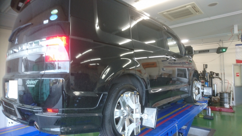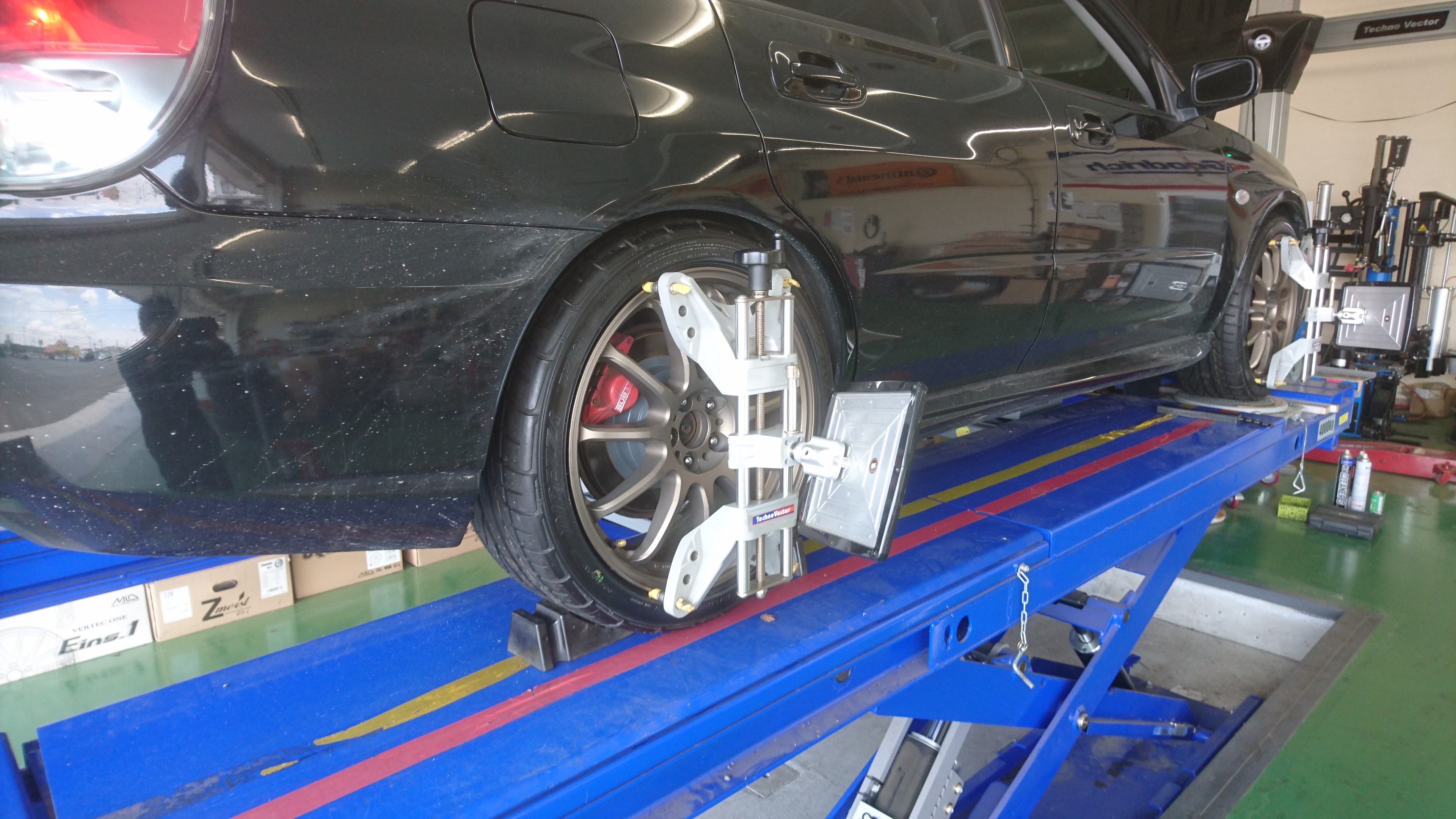 ぶつけてしまった箇所を点検する為、アライメント調整も一緒に行っております( ゚Д゚)