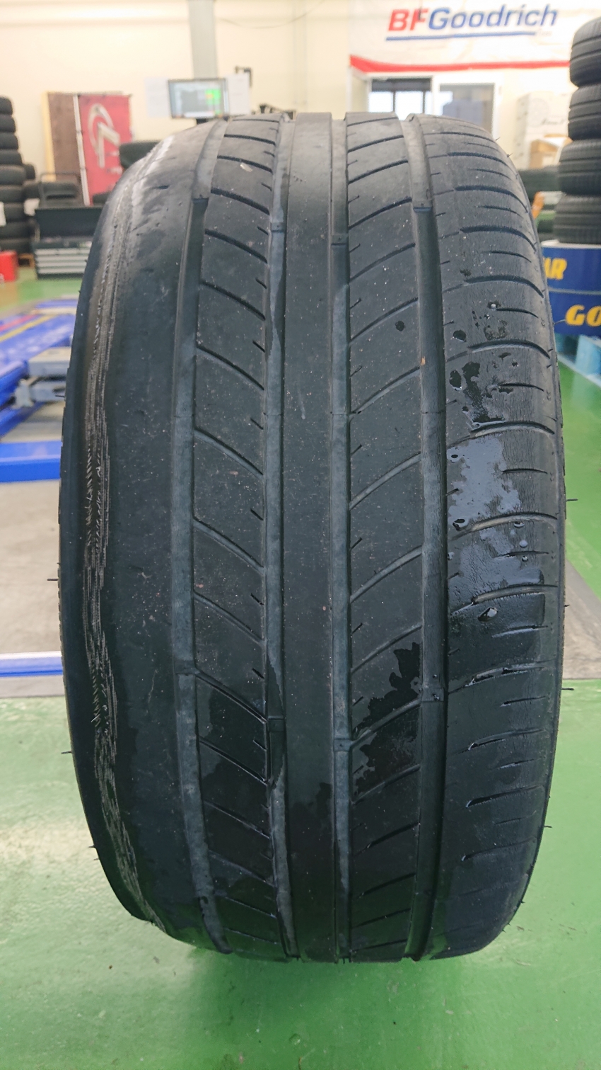 見ていただきたいのが、内側だけかなり偏磨耗してしまっているタイヤです。