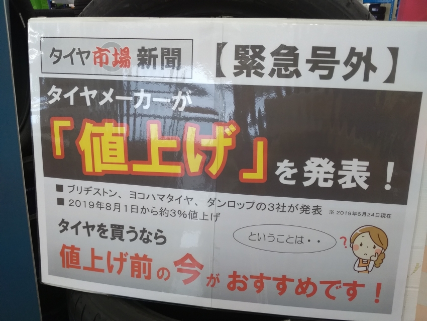 タイヤの値上げが