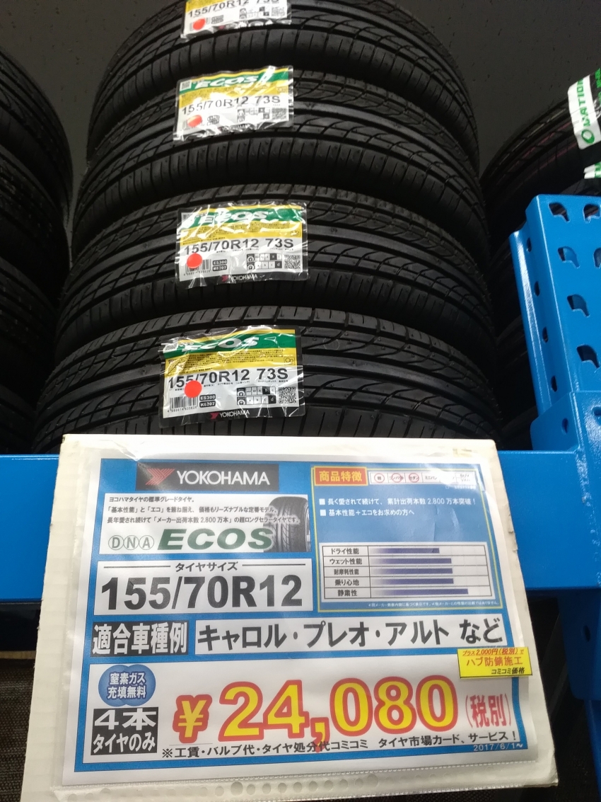 ヨコハマタイヤ エコス 155/70R12 レアサイズのため