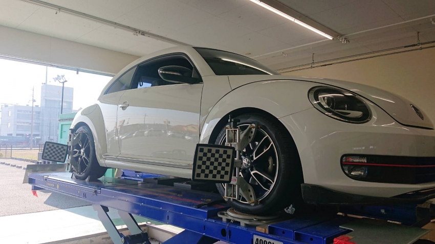 本日はビートルにお乗りのお客様がアライメント調整でご来店頂きました!