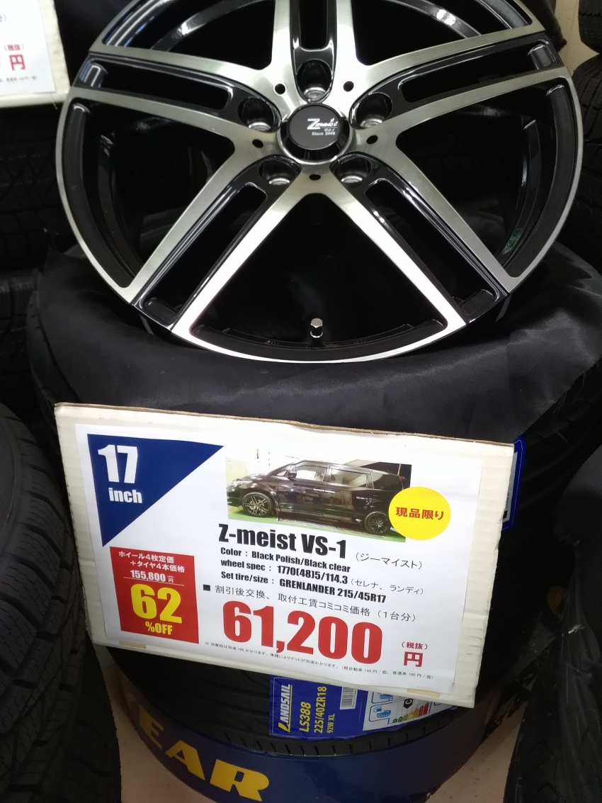 ホイールセットが62%OFFの工賃代込みで