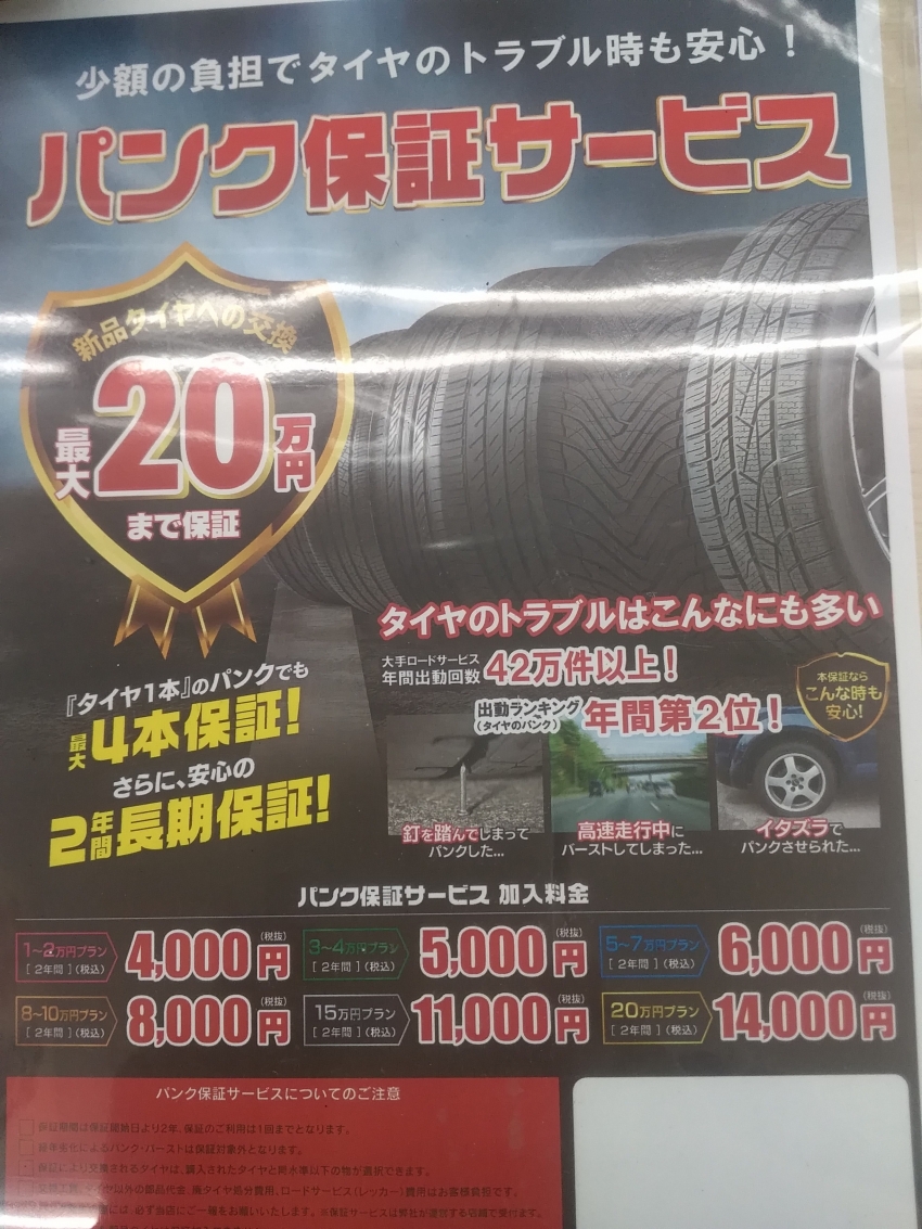 もしもの時の為に当店でタイヤご購入頂いた際には