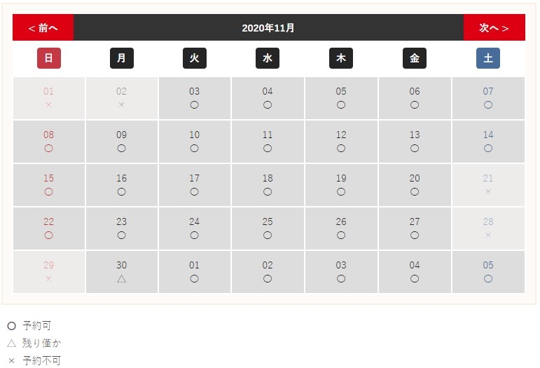 11月の予約状況です!!
