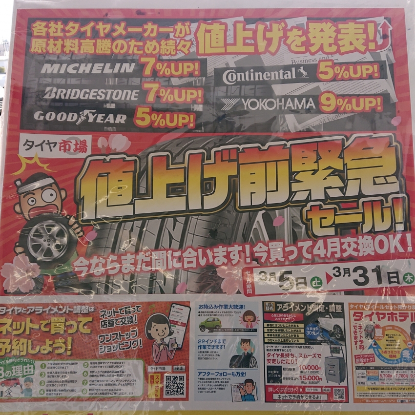 値上げする前にタイヤを購入してみてはいかがでしょうか??
