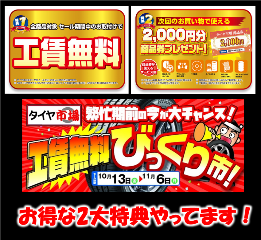 期間中のタイヤ4本購入には超お得な2大特典が付いてきます!