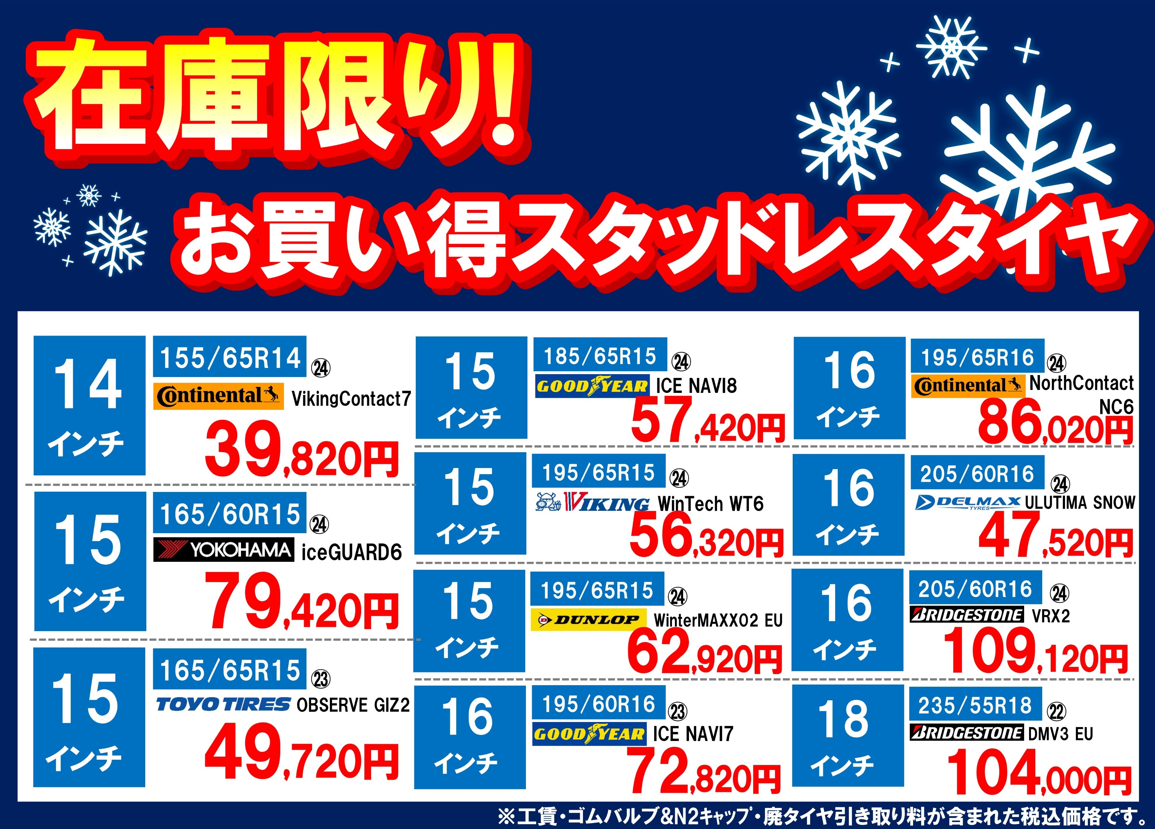 【在庫限り】在庫品スタッドレス お預かり無料!【花園インター店】