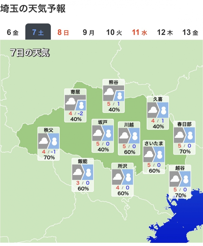今週の土日......埼玉県にもとうとう雪マークが!><