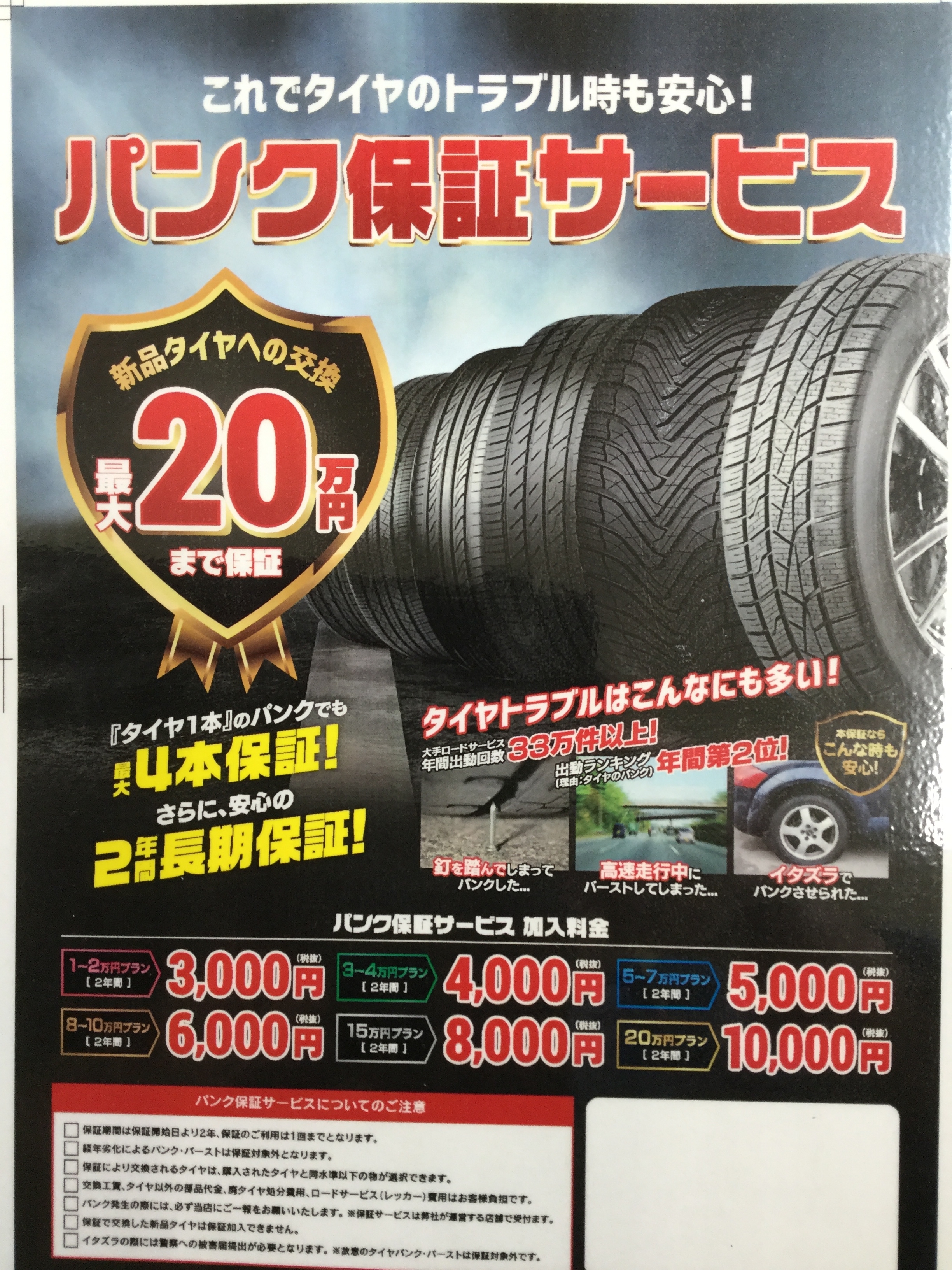 パンクした時の安心感が違います。当店でもオススメのサービスとなっております。